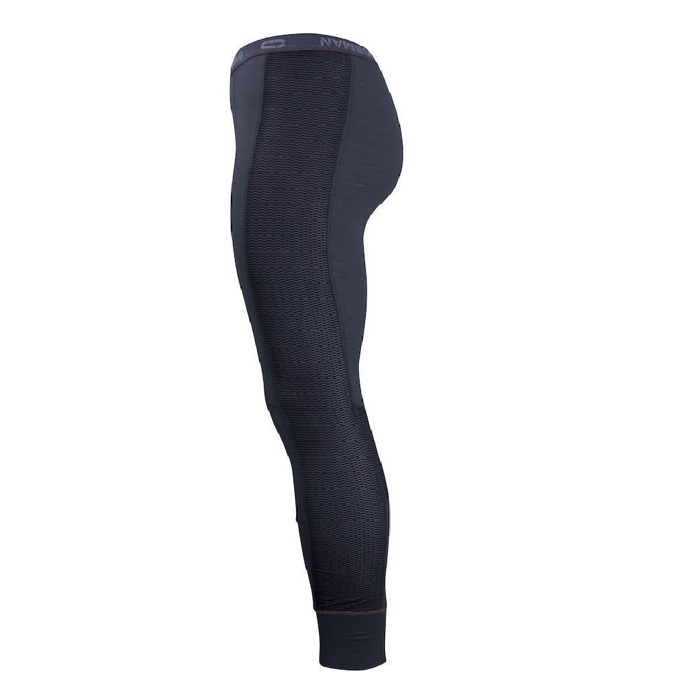 Fuseau en laine mérinos et empiècements en polyester pour augmenter le transport de l’humidité. Traitement antibactérien. Coutures et étiquettes non irritantes. Lavable à 40° C.