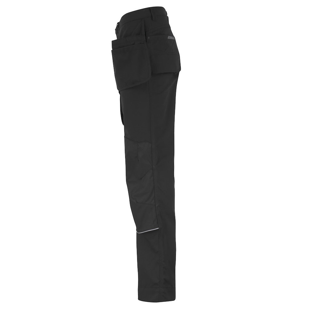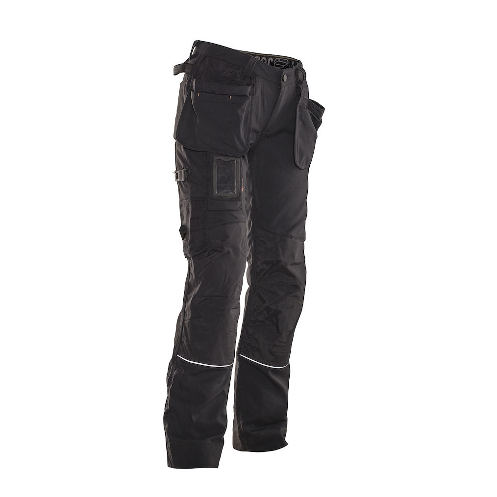 Grandes poches étuis qui peuvent être rangés dans les poches avant. Bouton recouvert de caoutchouc pour éviter les frottements. Poches arrière renforcées à l’intérieur. Boucle porte-marteau. Boucles supplémentaires sur les grandes tailles. Poche mètre et porte-couteau avec bouton. Poche jambe avec fermeture éclair, poche téléphone et poche porte badge. Genoux préformés pour un confort optimal. Poches genouillères en polyamide avec bandes réfléchissantes et réglables sur 2 positions. Renforts aux chevilles en polyamide imperméable. Cordon de serrage aux chevilles. Conforme à la norme EN 14404 :2004+A1 :2010 Type 2 Niveau 1 avec les genouillères Jobman 9943, 9944 et 9945.