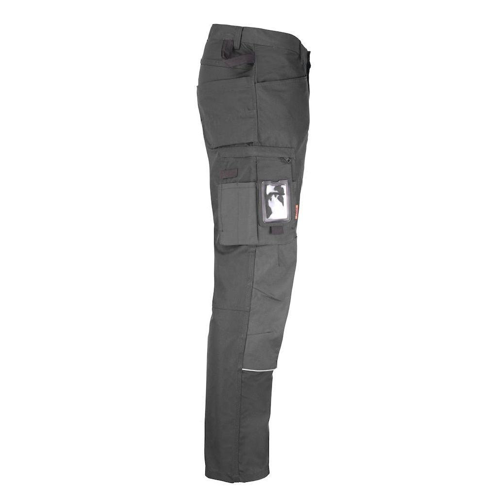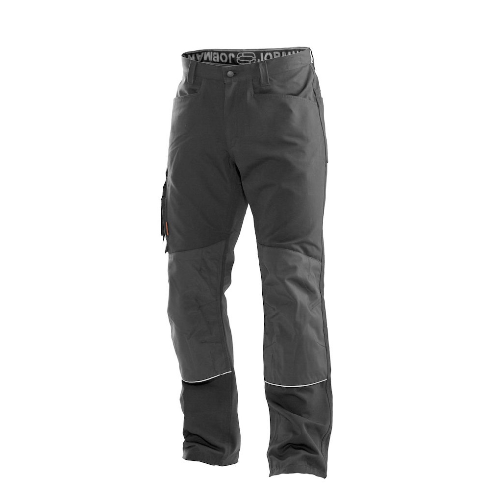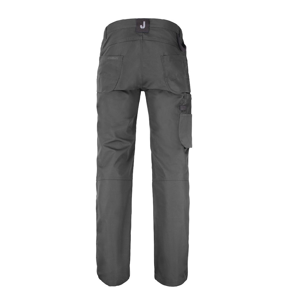 Grandes poches avant. Boutons recouverts de caoutchouc pour éviter les frottements. Poches arrière renforcées à l’intérieur. Boucle porte-marteau. Boucles supplémentaires à la ceinture sur les grandes tailles. Poche mètre avec porte-couteau avec bouton. Poche jambe avec fermeture éclair, poche téléphone, poche porte badge et poche supplémentaire. Genoux préformés pour un confort optimal. Poches genouillères en polyamide très résistant avec bandes réfléchissantes. Genouillères réglables en deux positions. Conforme à la norme EN 14404 :2004+A1 :2010 Type 2 Niveau 1 avec les genouillères Jobman 9943, 9944 et 9945.
