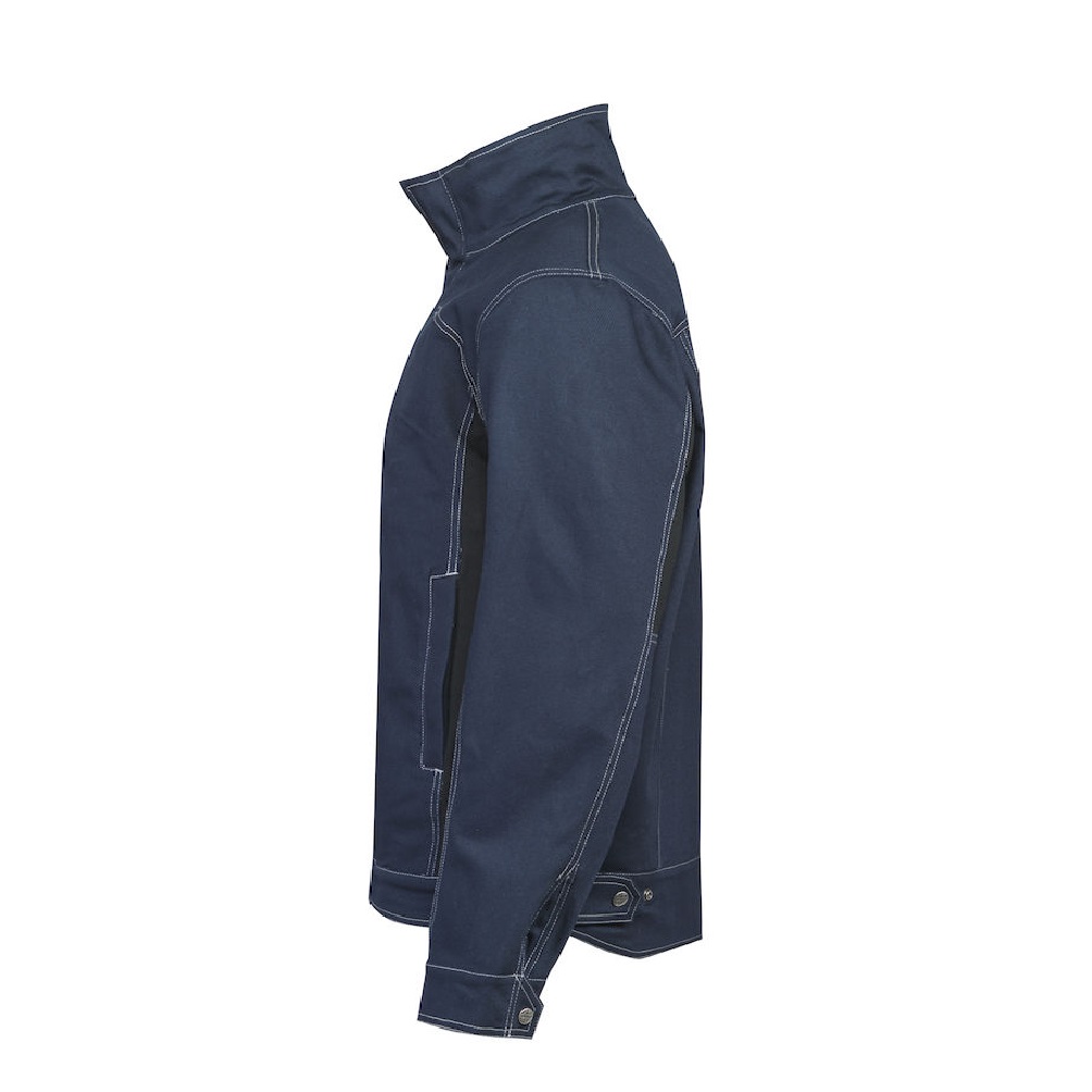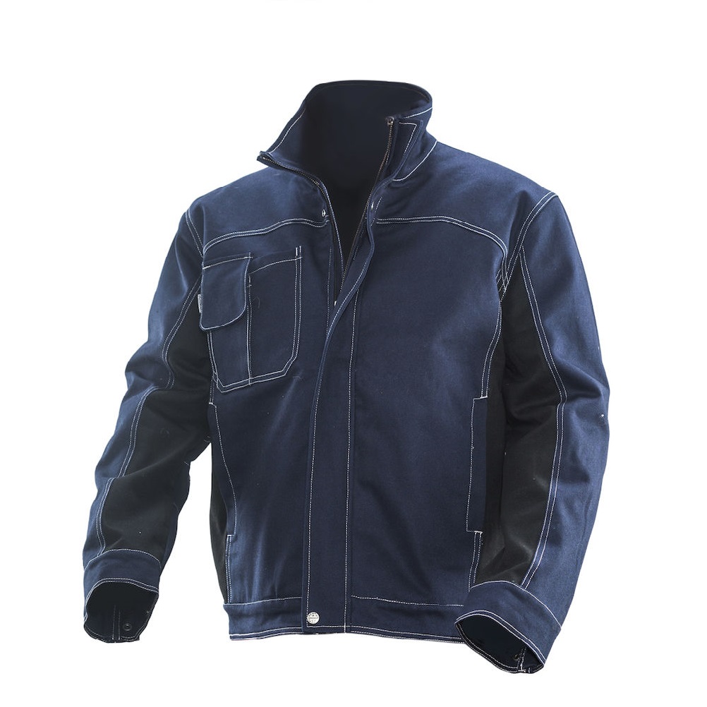 Veste en coton avec contraste de couleur sur les côtés et les manches. Poche téléphone, poche poitrine avec porte badge. Poches ventrales et poche intérieure. La taille et les poignets sont ajustables. Fermeture avec rabat coupe vent jusqu’au col. Dos prolongé.